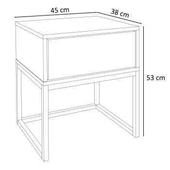 Das Möbelstück ist mit einem Rahmen aus dickem pulverbeschichtetem Stahl ausgestattet, der für die Stabilität und Langlebigkeit des Möbelstücks verantwortlich ist. Ergänzt wird das Ganze durch einglatte Platte, auf der man alles Nötige unterbringen kann, und dank einer praktischen Schublade herrscht bei jedem Bett die gewünschte Ordnung.