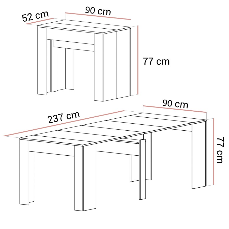 Familienfeiern in den eigenen vier Wänden haben ihre ganz eigene Atmosphäre, und unser Fuerro-Tisch in der voll ausgezogenen Version wird Ihnen die Organisation sicher erleichtern. Im Alltag jedoch dient die aufgeklappte Version als Platz für die Hausaufgaben, zum Einholen der Arbeit oder als Schminktisch für das morgendliche Make-up.