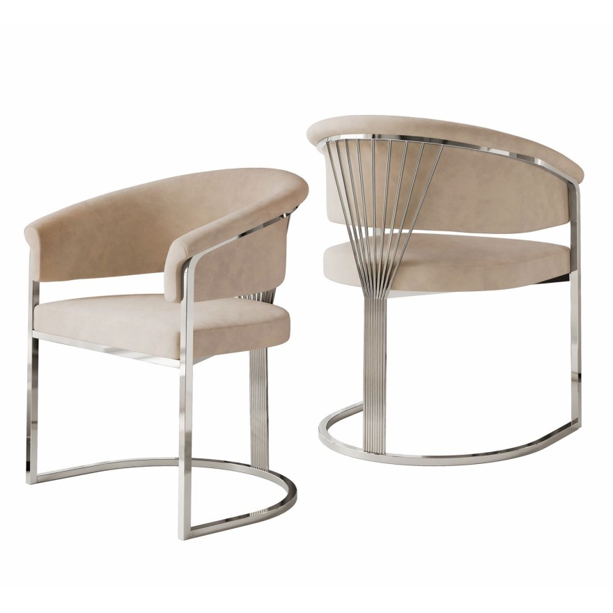 Der Polsterstuhl MOUNIR mit seinem einzigartigen Untergestell in Chromoptik unterstreicht perfekt den modernen Charakter und verleiht dem Raum einen einzigartigen und stilvollen Akzent.