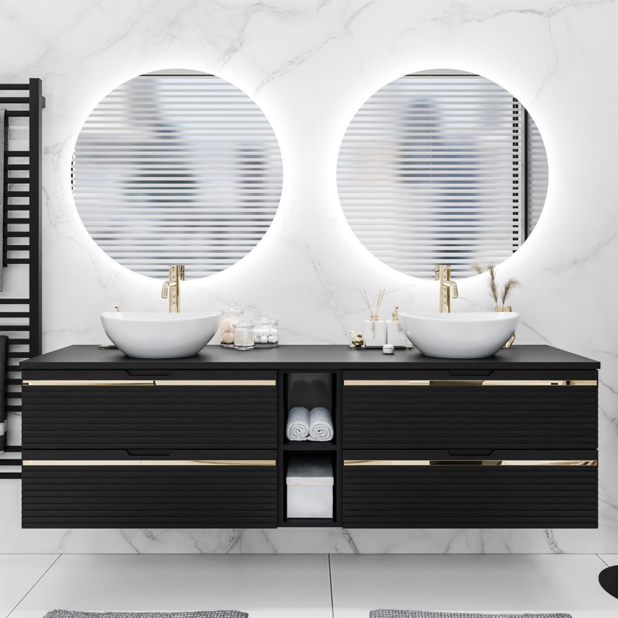 Das Badezimmermöbel-Set ARTEMIS mit einem hängenden Waschbeckenunterschrank und einem LED-Spiegel ist eine harmonische Kombination aus modernem Design, Funktionalität und sorgfältiger Verarbeitung. Ein weiterer Vorteil des Sets ist die doppelte Konstruktion, die eine ideale Lösung für größere Räume oder die gemeinsame Nutzung darstellt.