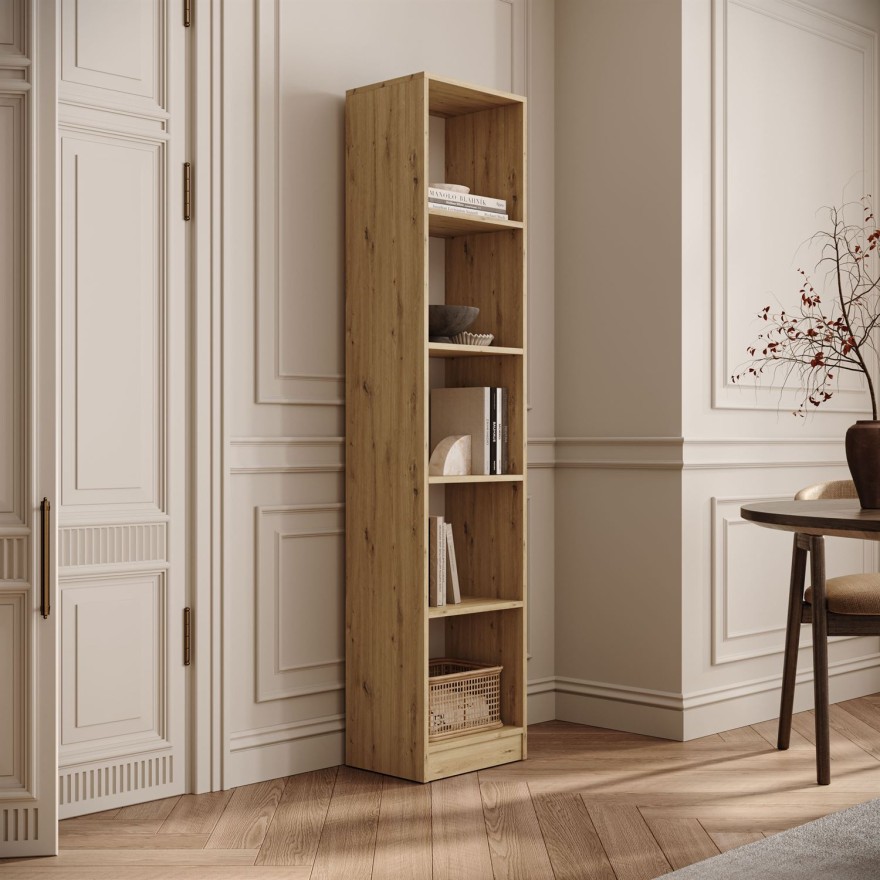 Dank der offenen Regalböden bietet das Regal eine praktische und übersichtliche Lösung zur Aufbewahrung. Die Böden eignen sich ideal zur Präsentation von Büchern, Dekorationen, Pflanzen oder Alltagsgegenständen und verleihen dem Raum zugleich Leichtigkeit und eine aufgeräumte Ausstrahlung.