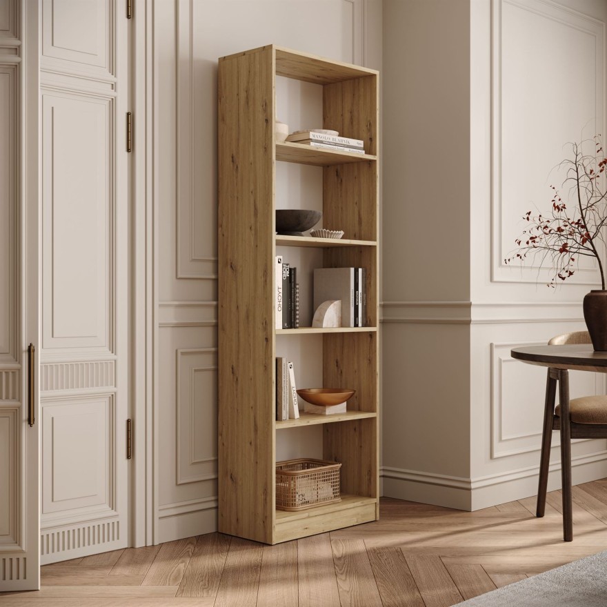 Dank der offenen Regalböden bietet das Regal praktischen Stauraum sowie Platz zur Präsentation von Büchern, Dekorationen, Pflanzen oder Alltagsaccessoires. Die offene Konstruktion sorgt dafür, dass alles griffbereit ist und der Raum seine Leichtigkeit und Übersichtlichkeit behält.