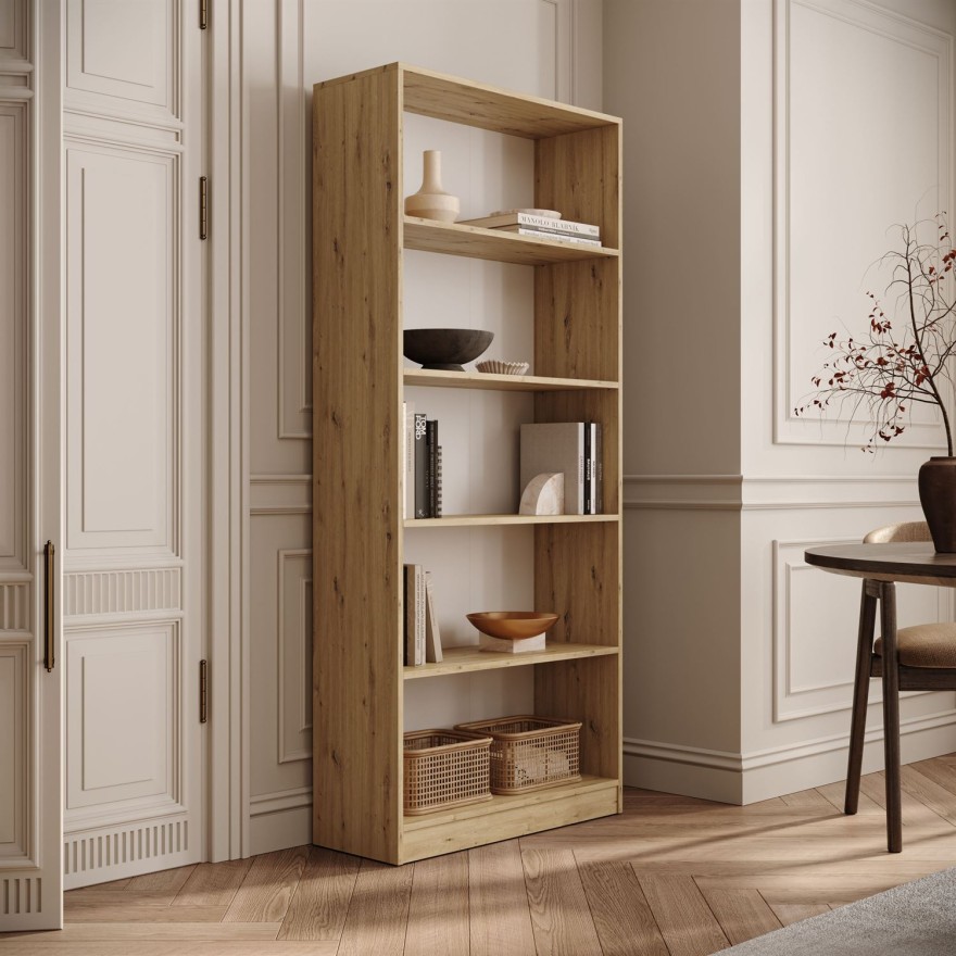 Dank der offenen Regalböden bietet das Regal großzügigen Stauraum sowie Platz zur Präsentation von Büchern, Dekorationen, Pflanzen oder anderen Alltagsgegenständen. Die offene Form sorgt dafür, dass der Raum leicht und aufgeräumt wirkt und die wichtigsten Dinge stets griffbereit sind.