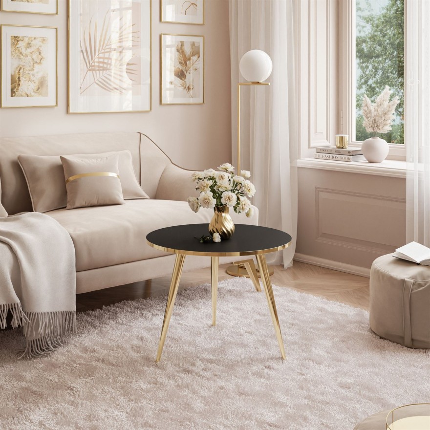Runder Couchtisch SOLEIL GOLD Schwarz Matt