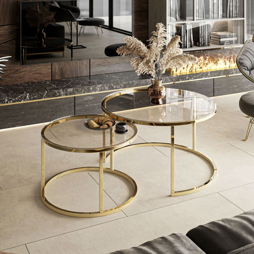 Die SELAVI-Tische ermöglichen es, eine elegante und platzsparende Komposition zu schaffen, die ideal für kleinere und größere Räume ist.