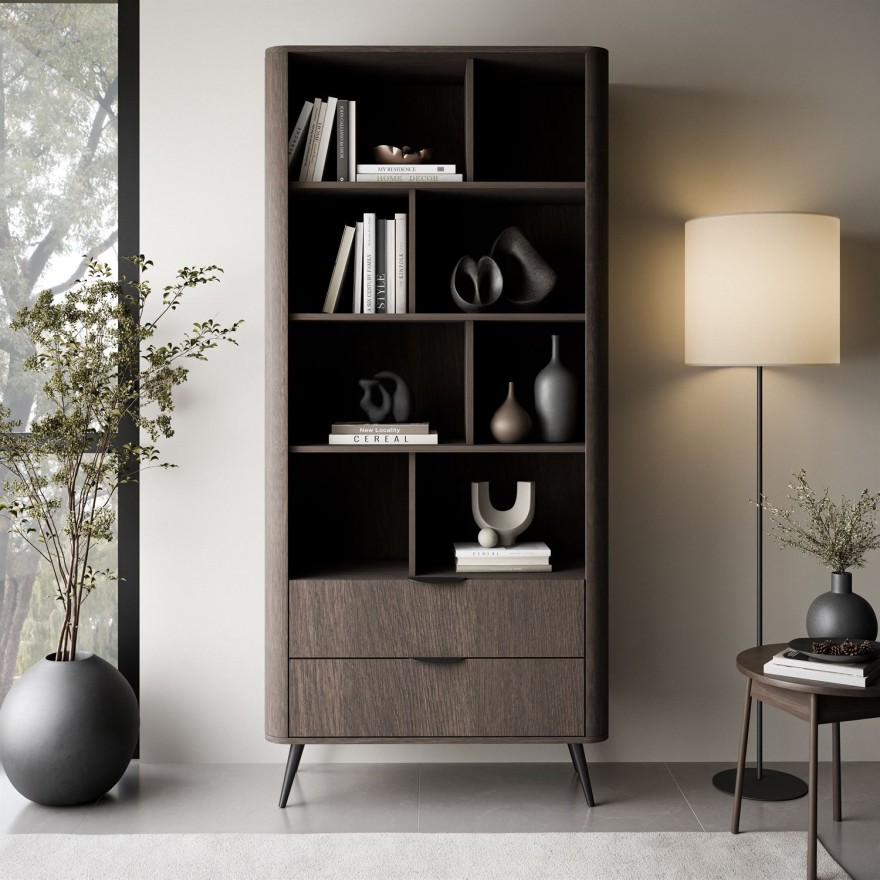 Die TWILIGHT-Kollektion, inspiriert von der Ruhe der Dämmerung und der Harmonie moderner Arrangements, schafft einen besonderen Raum, der Entspannung und täglichen Komfort fördert. Sie besticht durch die subtile Kombination eines kühlen Holztons mit eleganten schwarzen Akzenten. Glatte Fronten und leicht abgerundete Seiten verleihen der Form Sanftheit und modernen Charakter. Schlanke Metallfüße unterstreichen die Leichtigkeit der Konstruktion, sodass sich das Regal perfekt in Modern-, Loft- und Japandi-Arrangements einfügt.