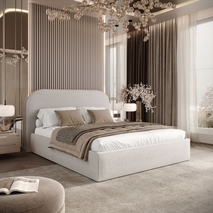 Das Produkt bietet umfangreiche Möglichkeiten zur individuellen Konfiguration und ermöglicht die freie Wahl der Liegefläche sowie der Stofffarbe aus einer breiten Materialpalette. Dank dieser Flexibilität fügt sich das Bett perfekt in verschiedene Einrichtungsstile ein – von Soft-Minimalismus bis hin zu eleganten, luxuriösen Schlafzimmern.