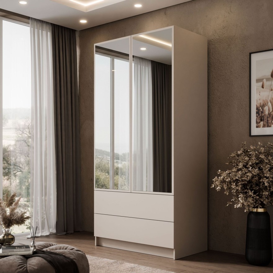 Das Modell AUREL ist in der Variante mit oder ohne Spiegel erhältlich, und die Öffnungsart kannst du nach deinen Vorlieben wählen – klassisch mit Griffen oder modern mit dem Push-to-Open-System. Dadurch passt sich der Schrank sowohl in ein gemütliches Schlafzimmer als auch in einen modernen Wohnraum perfekt ein.