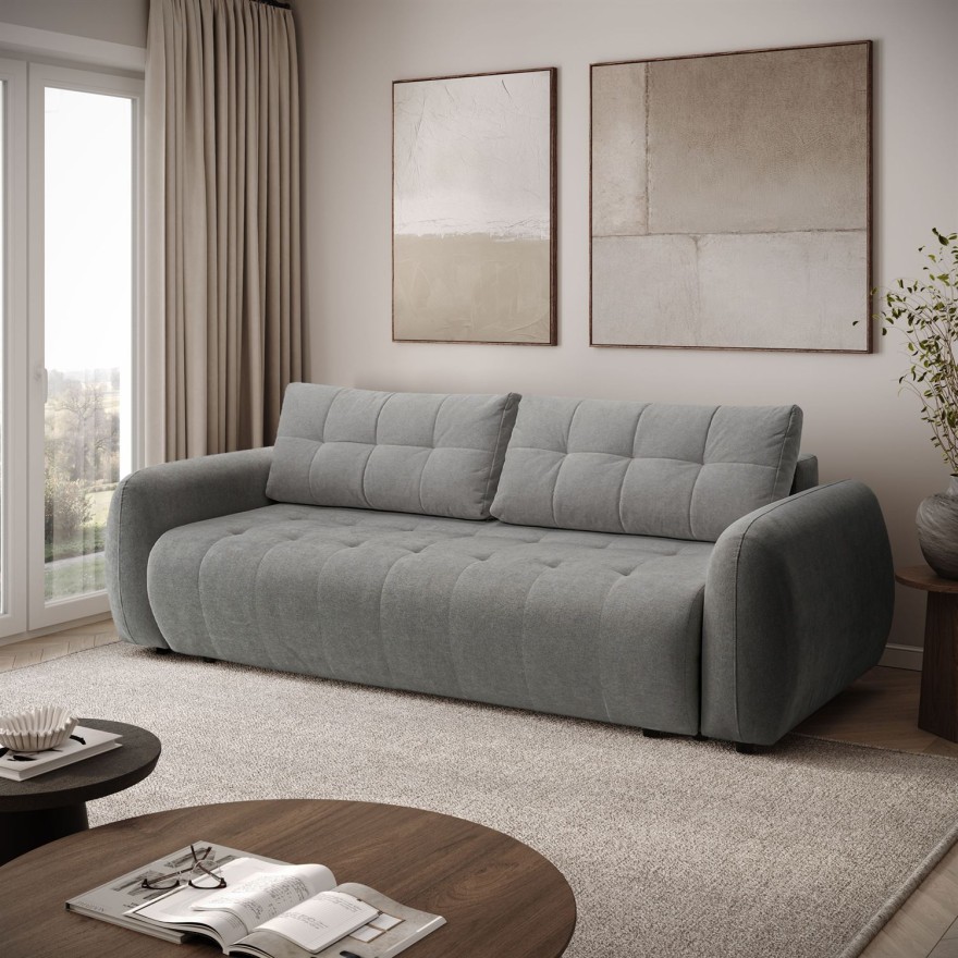 OMEGA ist ein modernes Sofa, das hohen Komfort, Funktionalität und elegantes Design vereint. Dank der bequemen Sitzfläche, der zwei Rückenkissen, der Schlaffunktion und des Bettwäscheschranks eignet es sich ideal für den täglichen Gebrauch. Es ist eine stilvolle und praktische Wahl für jedes Wohnzimmer.